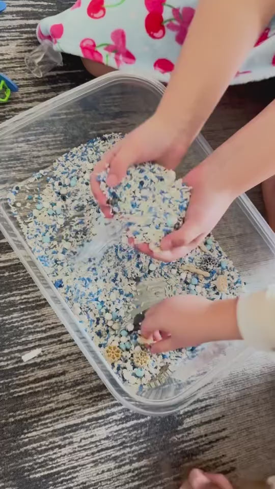 Turn playtime into a sparkling winter storm with our Blizzard Bliss Sensory Mix! This handcrafted Christmas Sensory Bin filler is packed with icy textures, snowy colors, and magical winter elements that invite endless sensory play, fine motor practice, and open-ended Montessori-inspired learning! ❄️
